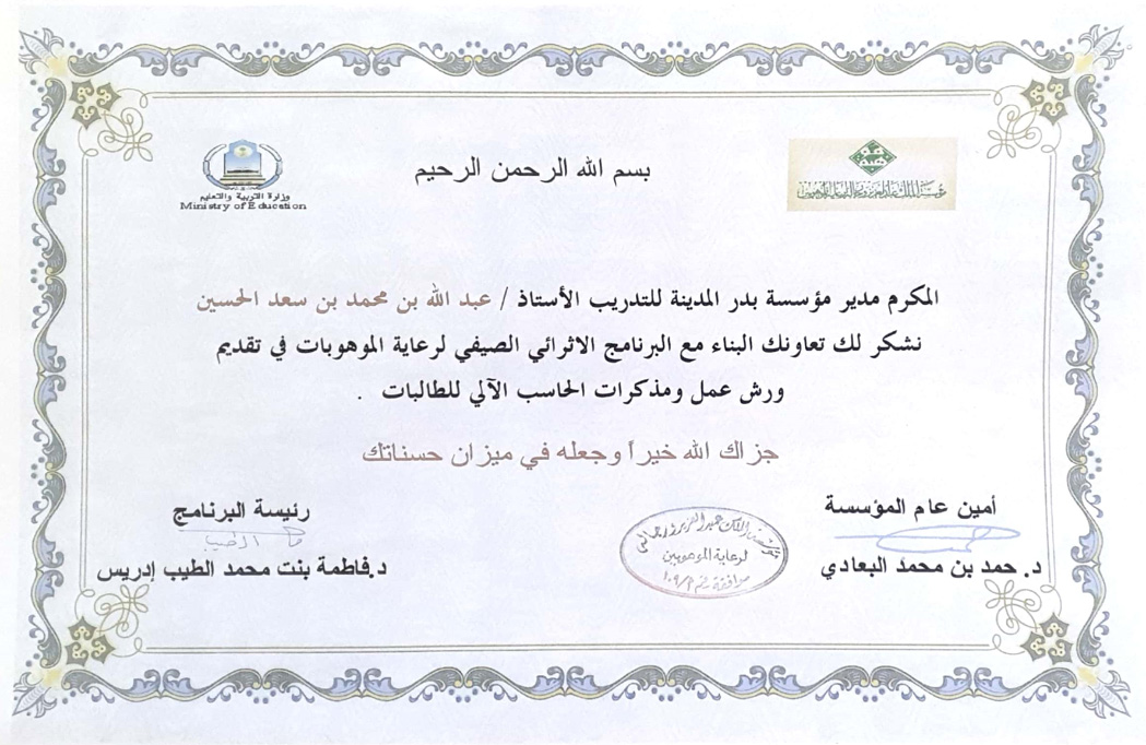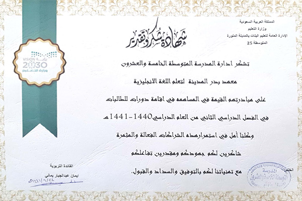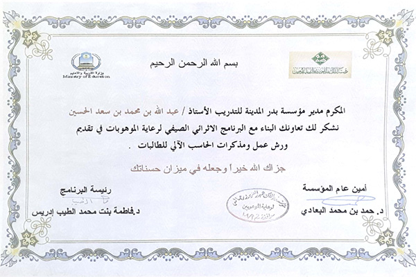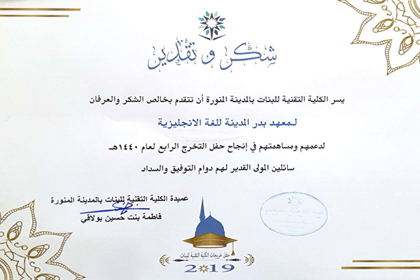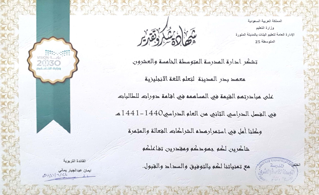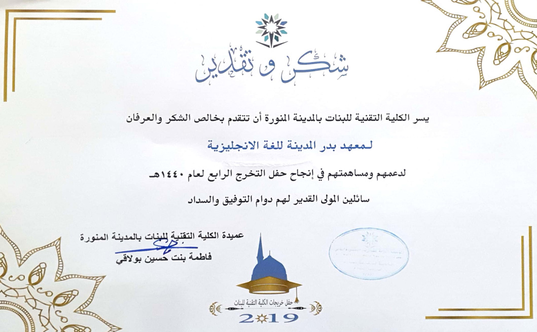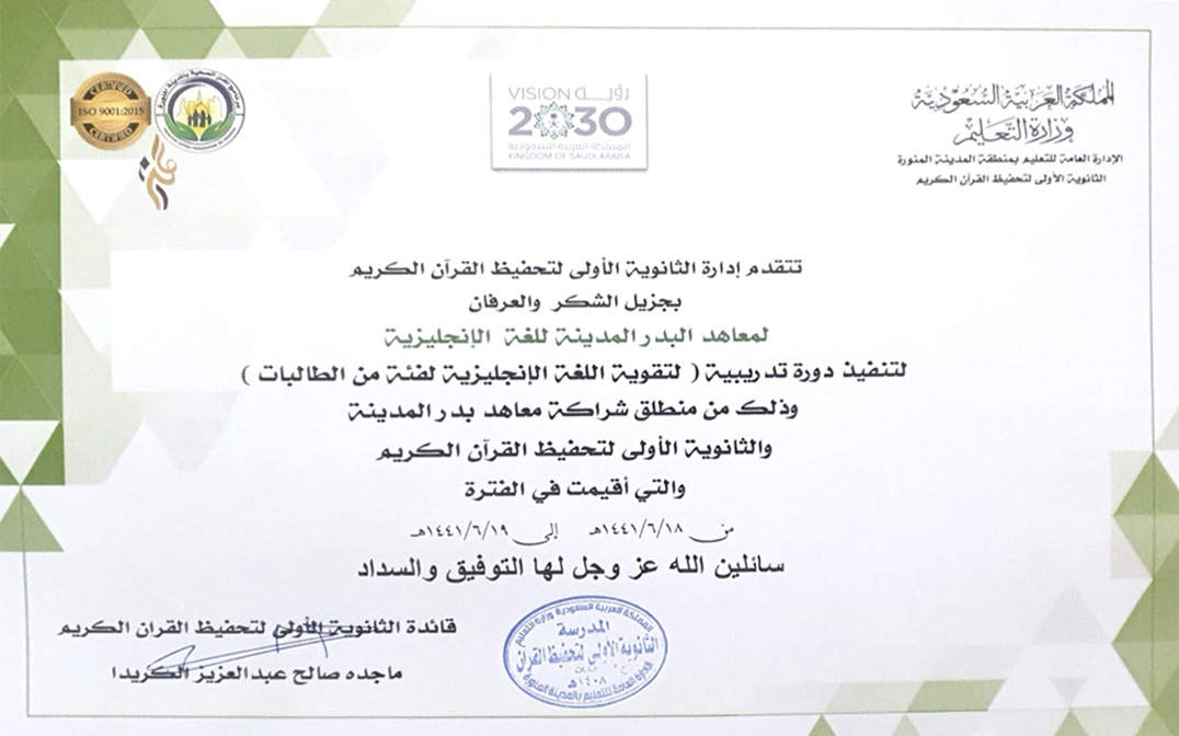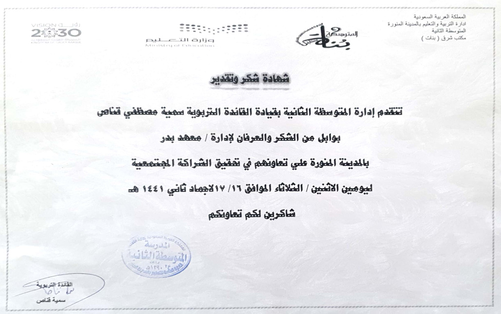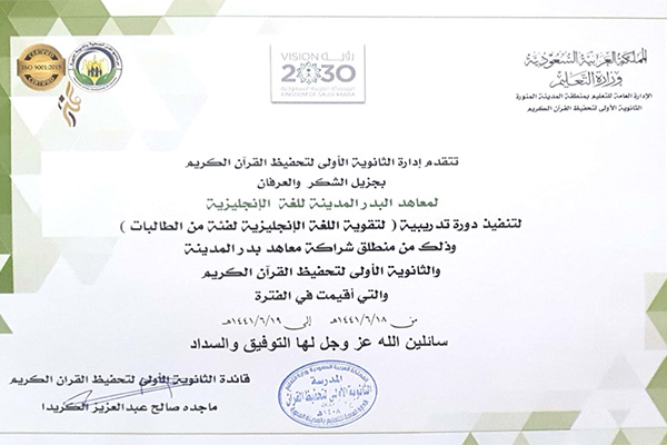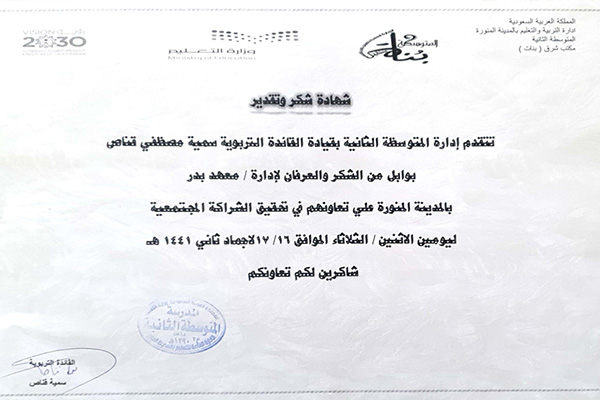 حصدت معاهد بدر المدينة على العديد من الشهادات والجوائز